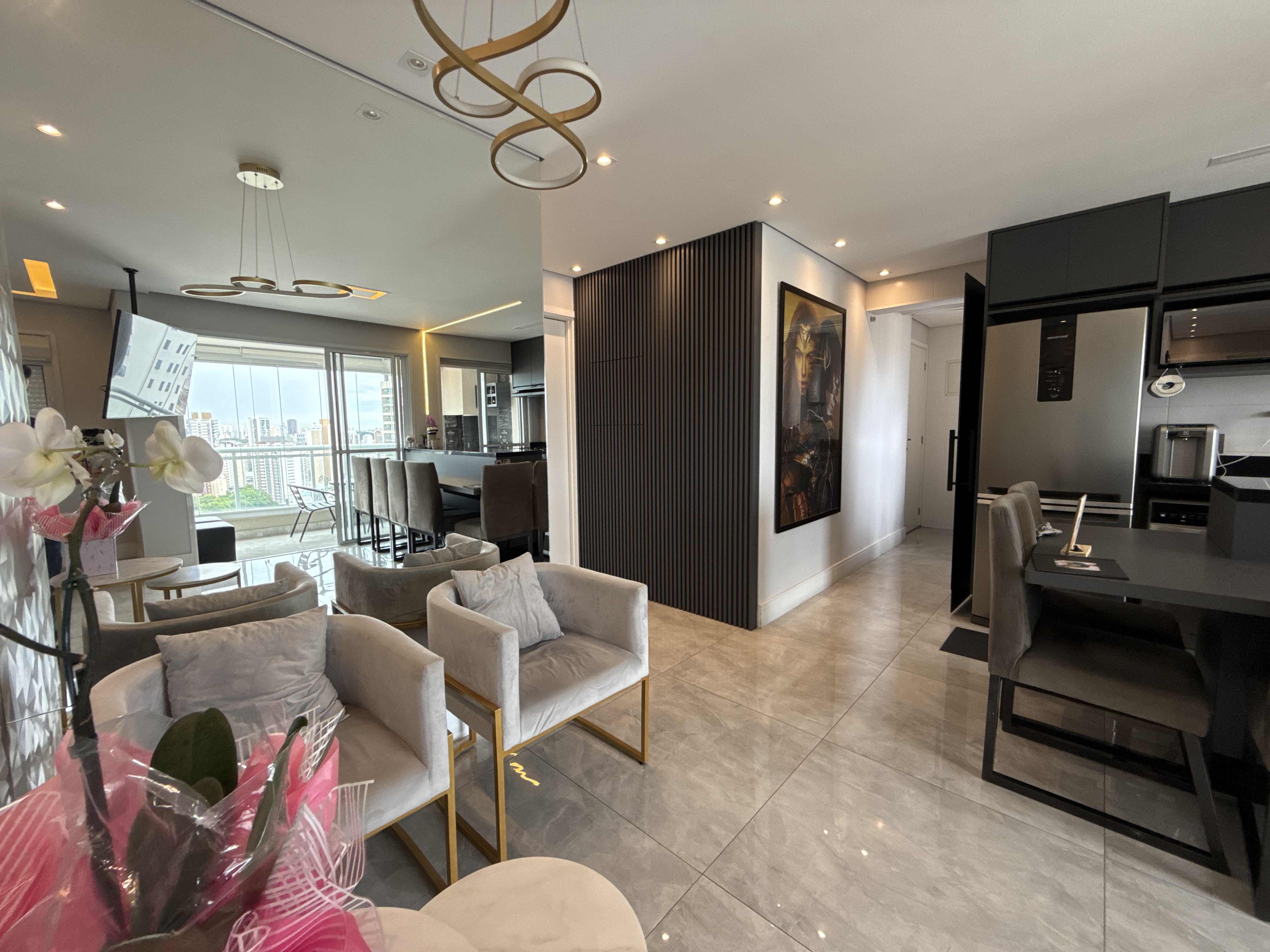 A área social é um destaque à parte: sacada gourmet envidraçada, perfeita para receber amigos e familiares, integrada ao living moderno e aconchegante.