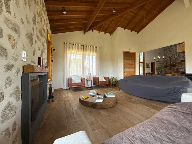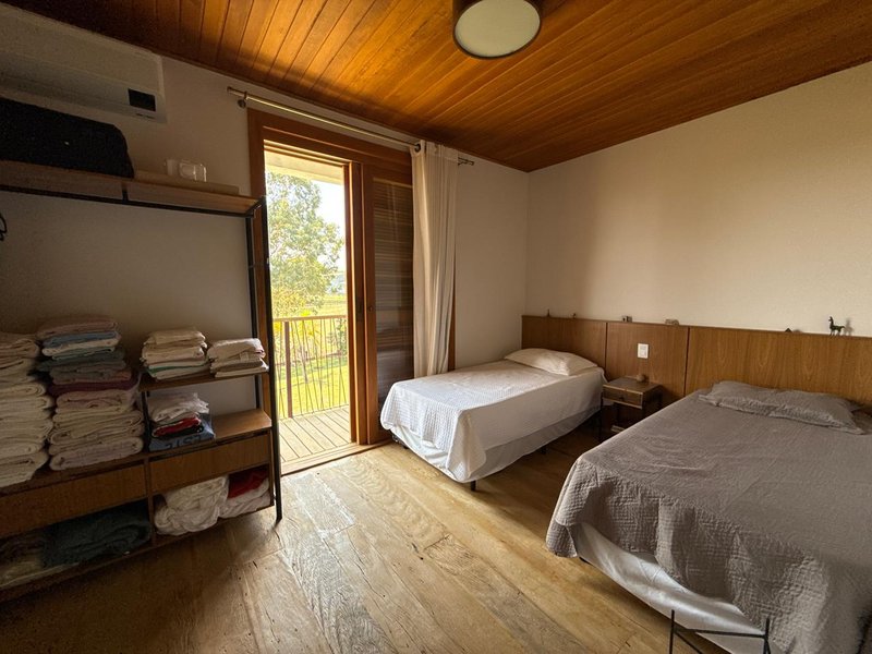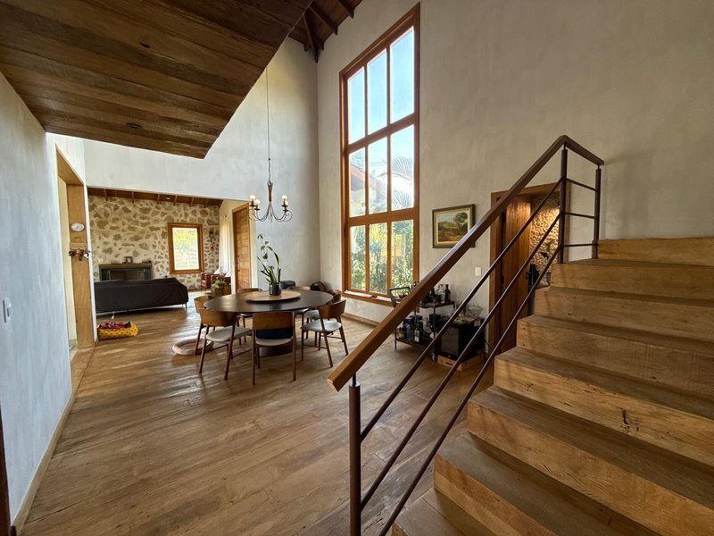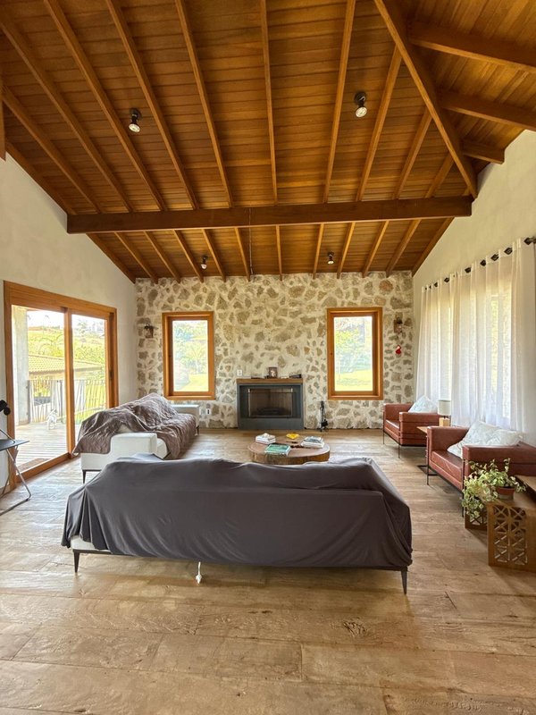 Uma casa que une o aconchego do campo à sofisticação dos detalhes. Com acabamento rústico, piso e esquadrias em madeira de demolição de peroba rosa, cada ambiente foi planejado para viver o campo da melhor forma — com conforto, elegância e uma vista simplesmente impagável.